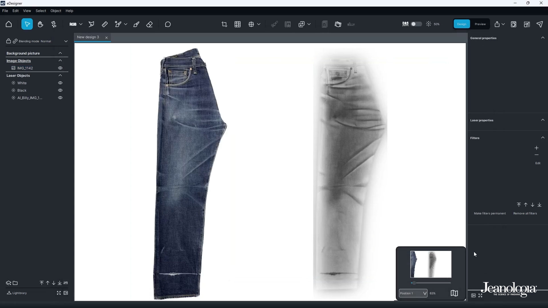Trained with real denim and laser data*, Billy brings traditional craftsmanship into the digital world, analyzing any garment image and transforming it into a precise, design ready for laser marking.